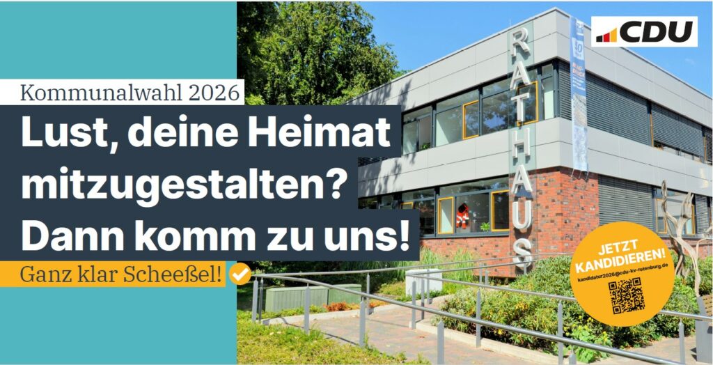 Ein Plus für Scheeßel – das will die CDU hier vor Ort sein und wir freuen uns, dass Sie unsere Website besuchen. Die CDU Scheeßel ist die starke politische Kraft in der Gemeinde, in der sich Frauen und Männer aus allen Altersgruppen und Lebenslagen engagieren.